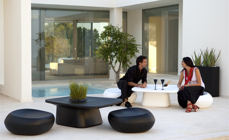 MOMA系列, 是西班牙著名设计大师Javier Mariscal 为VONDOM 设计的一系列户外产品。在决定创造一个新的家具概念-将花盆和户外桌子功能二合一的家具,MOMA就此诞生了,一个以多功能和独创性为特点的系列。然后在疑问:“我们怎么坐?”后,产生了可以适合不同气氛环境的三个版本,一个是休闲的,LOW,配套了同一系列的很舒适的矮座,另外一个是可以坐在一个椅子或者凳子来配置使用的,Medium ,左后的版本就是可以站起来或者坐在一个高凳来配置使用,HIGT。在设计的时候,灵感来自于自由空气下欣赏一杯清爽的饮料。最初的形状是器官的。在随着项目的发展,朝着更建筑学的形状,现在的形状就像一个柱顶或者隅撑,在表面支撑的部位,有一个洞,他的作用是花盆,一个带有VONDOM的自动淋水系统的花盆。其丰富鲜艳的色彩,令这个系列更新鲜,更个性。