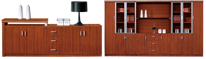 ※ 此款班台木纹鲜明,配以银色为点缀,独特的线形设计韵含了一种灵气,使人眼前一亮。多元化的桌面设计能满足您各种组合变换、空间互补的要求。附助储物装置方面则备有流动式矮柜及档柜。