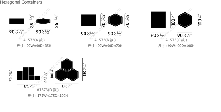 Hexagonal Containers 系列尺寸/示意图