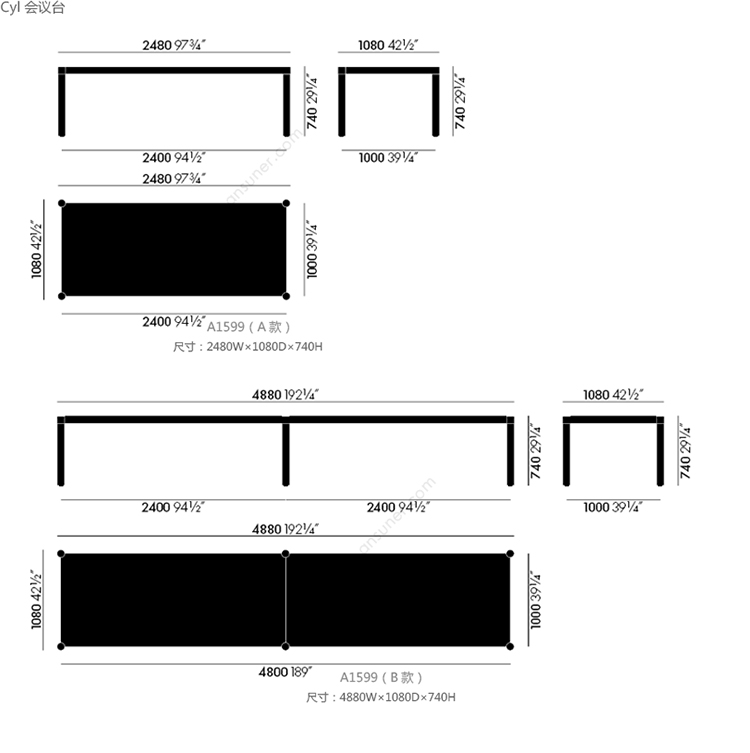 Cyl 会议台 系列尺寸/示意图