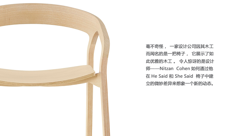 毫不奇怪,一个设计公司的木工说想出了一个椅子,展示了如此优美的木工。令人吃惊的是设计师Nitzan Cohen设想了一个新的动态与他建立他的他说她说椅子的细微差异。