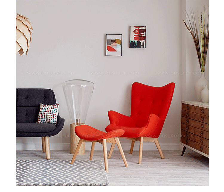 Contour系列家具由著名设计师Grant Featherston设计的,包括Contour Lounge Chair(轮廓休闲椅),Contour Lounge Ottoman(轮廓休闲脚踏)及其组合Contour Lounge Chair and Ottoman(轮廓休闲椅&脚踏)。Grant Featherston是澳洲设计界的灯塔,对许多澳洲设计师及家具控来说,Grant Featherston就是他们毕生的偶像。Contour系列家具有着花朵般的轮廓,工艺精湛榫楔结构的后倾脚座,细致钉扣从背靠延伸到坐面,超级舒适的包覆乘坐感,坐在其上面,真的就像是被捧在手心般的感觉。不论是乡村风、北欧风甚至是新古典低调奢华的家居风格,其都能像个公主般,优雅的点缀出您与众不同的品味。这把椅子经常被认为是澳大利亚家具设计的图标。灵感来自艺术与手工艺运动和包豪斯设计的极简主义的体现。