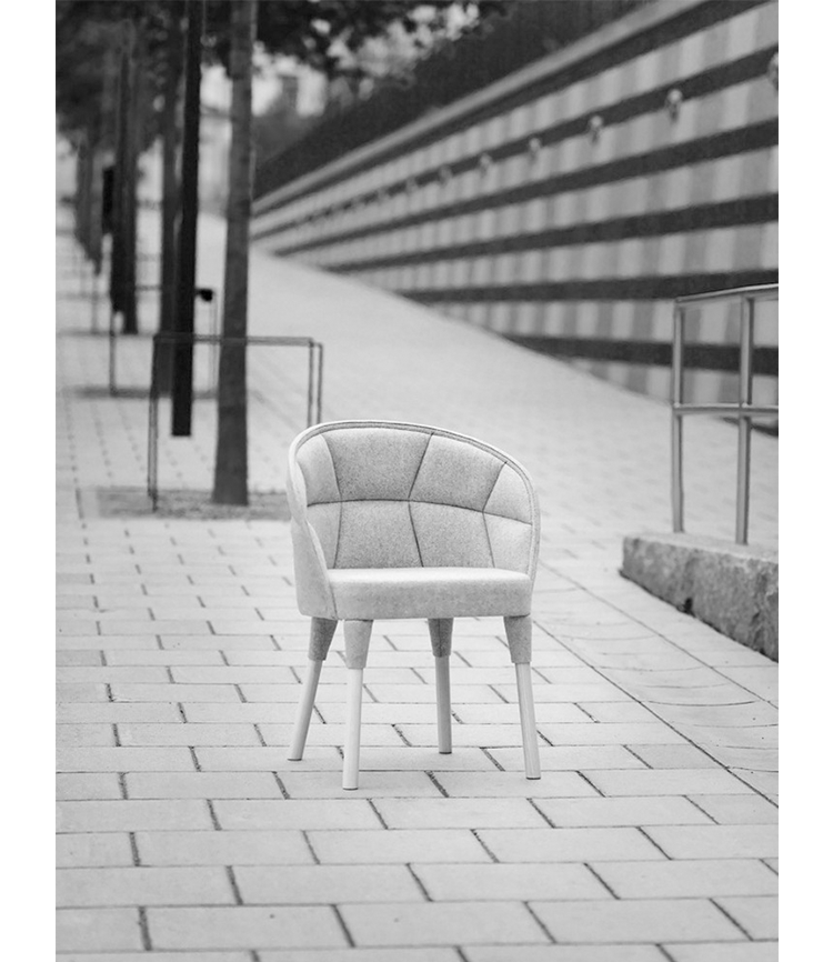 “Emily is our Emma easy chair’s little sister. just like siblings, they are similar but still different. The family likeness can be seen in the needlework: they are both upholstered, but differently pat- terned. The needlework is a function which also creates a powerful idiom. The special technique employed is based on a classical craft, while at the same time occupying the leading edge of technology. Emily is a comfortable chair, equally successful round the dining table and at a conference table.”