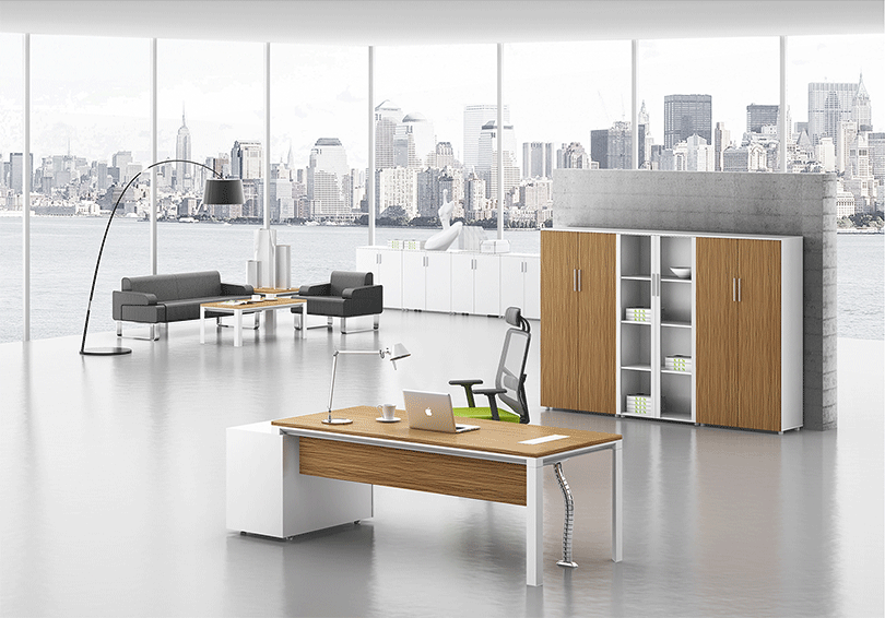 | 1、钢制脚架,实用高端大气; | 2、整齐划一、人性方便的桌面铝合金过线系统。 |