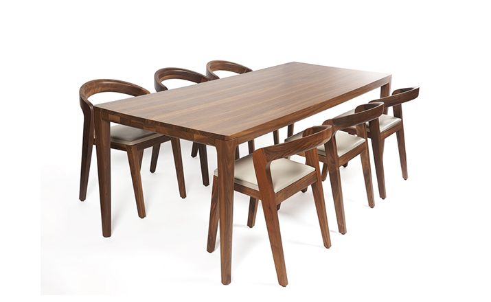 Elegant massive wooden table with an unique contemporary design,rounded edges at the table top and refined table legs.