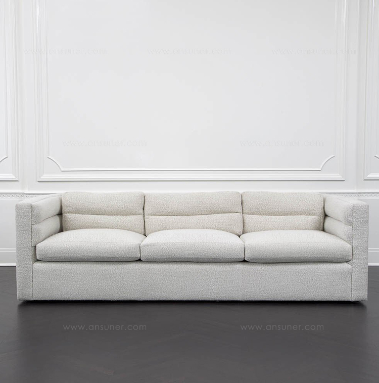 这款经典的扶手沙发采用柔软弧形靠背设计,整个过程中都有标志性的定制通道细节。 三个松散的靠垫和三个座垫使用10/90混合的鸭绒和羽毛,以延长寿命和极致舒适。 腿部采用低嵌入式木结构,使轮廓能够漂浮在地面上方。 硬木框架采用双向榫钉,配有8向手动弹簧,经久耐用,性能卓越。