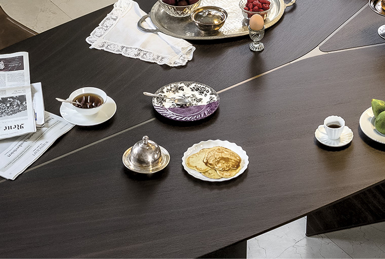 建筑的魅力与现代设计相结合。由Manzoni & Tapinassi设计的Epsilon餐桌是连接这两个世界的一种结构。这个底座,以一个Y字的特定的图形标志,在桌面上也可以看到,通过金属和木材之间的相互作用而丰富,是其特征显著。造就了这一个具有强烈动态个性的作品。