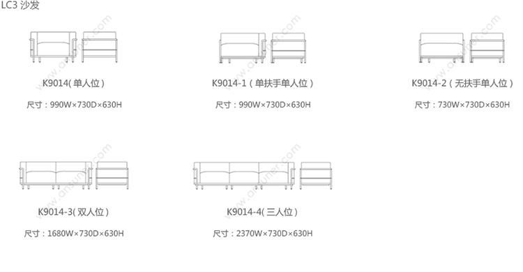 LC3 沙发 系列尺寸/示意图