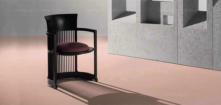 曲背餐椅,采用天然樱桃木、樱桃木色或黑色的胡桃木制造。塑料座面采用聚氨酯海绵和喷胶棉填充。座面软包为皮革或布艺面料。
