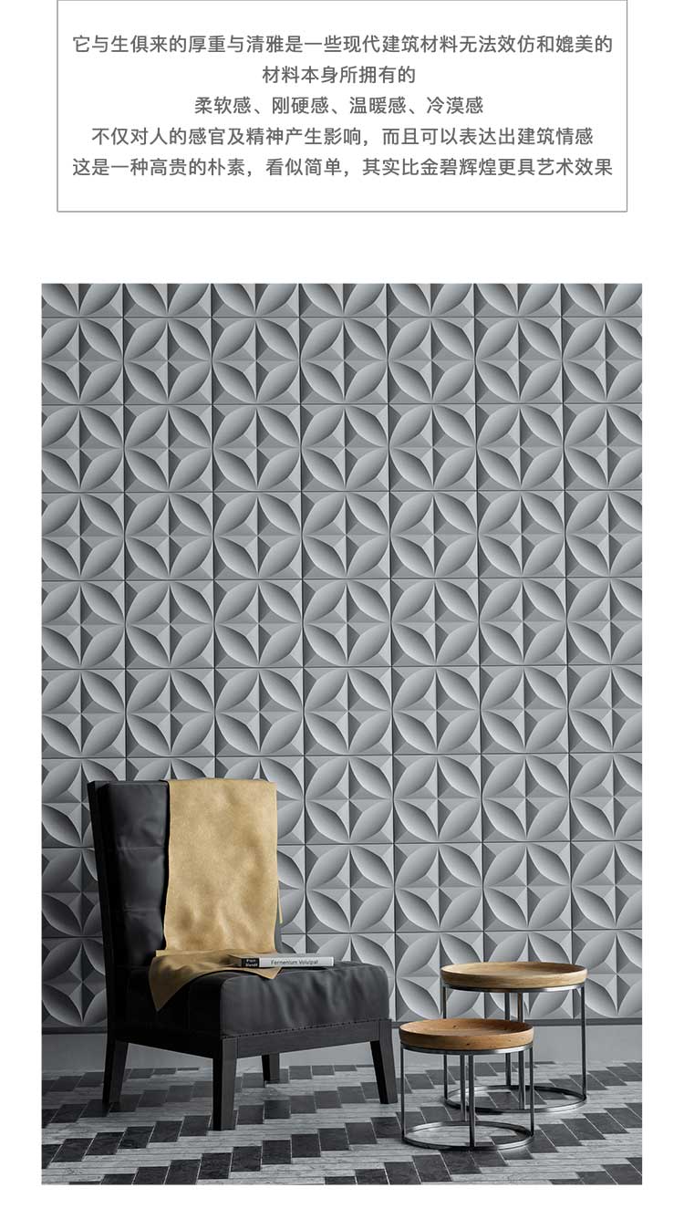 它与生俱来的厚重与清雅是一些现代建筑材料无法效仿和媲美的材料本身所拥有的柔软感、刚硬感、温暖感、冷漠感不仅对人的感官及精神产生影晌,而且可以表达出建筑情感这是一种高贵的朴素,看似简单,其实比金碧辉煌更具艺术效果。