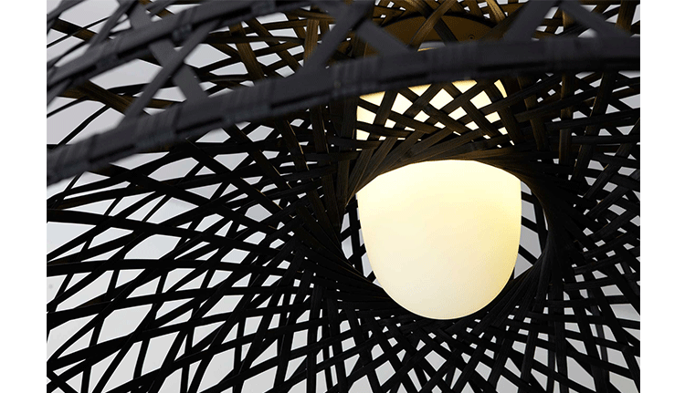 "Once upon a time an asian emperor received as a gift a nightingale. The charming bird sang so beautifully that the emperor always wanted it by his side. He placed the nightingale a majestic hand woven bamboo cage in the imperial chambers and listened, enchanted, to the magic sound" Material: Bamboo rattan cage, aluminum frame and glass diffuser Additional: Each cage is woven by hand And therefore has a unique character.