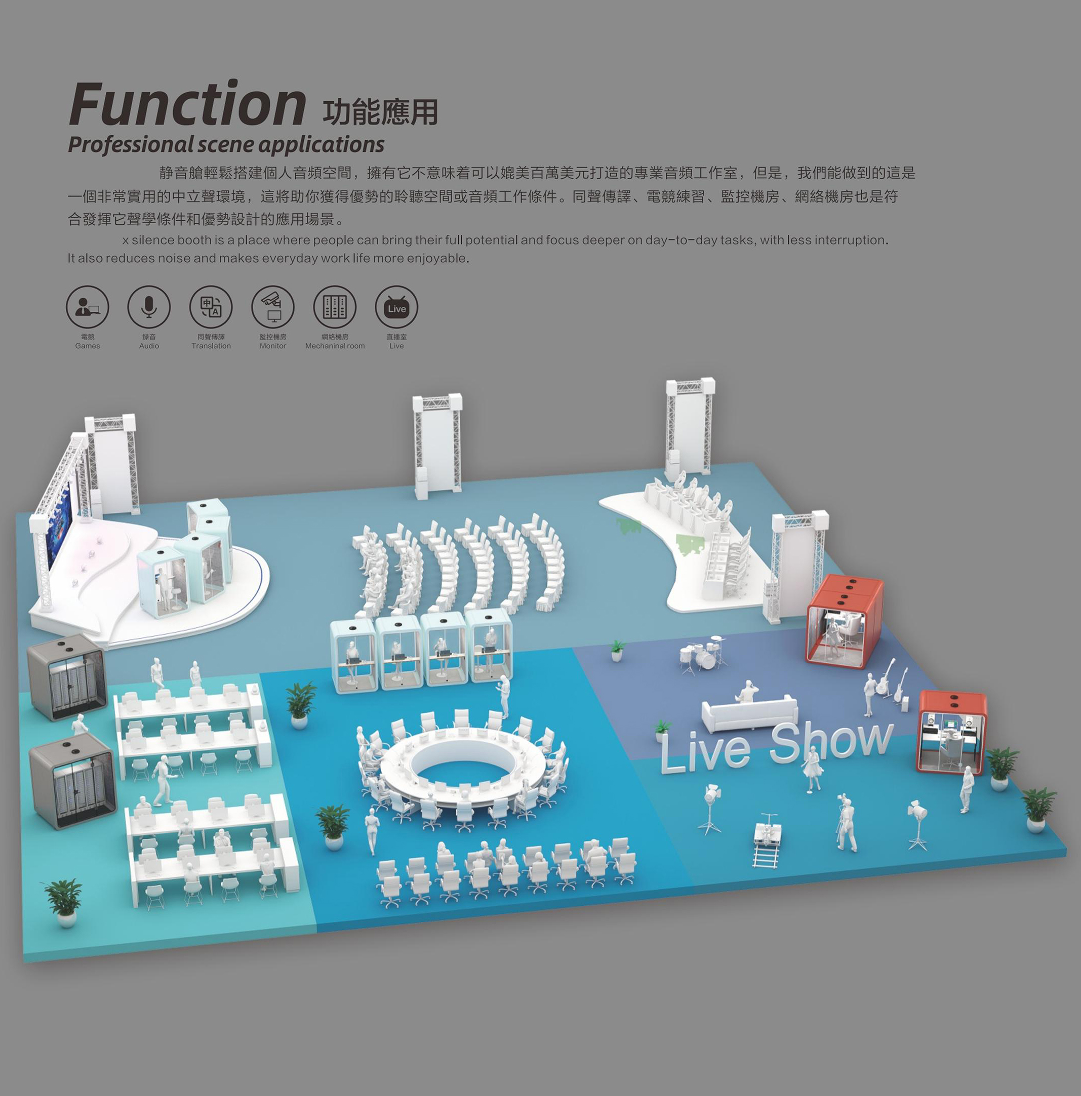 一个灵动的安静空间,满足您无限创想不传统的碳塑复合板、航空铝、隔声玻璃是它的主要组成,SOLIDWORKS软体力学建模让仓体组装仅需一种紧扣件,INSULMARSHALL ACOUSTIC 声学模拟设计准确预知并实现了舱体隔音和舱室音环境指标,它是一个强大,尽管它不是最完美的迷你空间,仓体采用可循环碳塑再生材料 SR系列 静音仓推崇低碳、简约、安全、实用主义优化非必要的功能和配置。从薄的全R角外观和互雅配色让它更精致、融入环境。